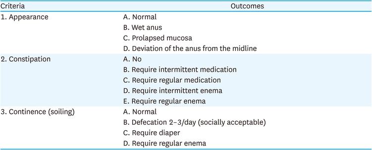 In addition to the functional outcomes, the psychosocial aspect and quality of life (QOL) are very important issues in the long-term management of patients with ARMs. Recently, long-term studies have been published to analyze the QOL of patients with ARMs [15, 18]. Wong et al. [15] reported that the QOL scores based on the Hirschsprung disease/Anorectal Malformation Quality of Life (HAQL) questionnaire were comparable between the LAARP and PSARP in all areas except social functioning. Unfortunately, it was not possible to directly compare the two national survey groups regarding functional outcomes because the assessment criteria were different in our two national surveys. There is also limitation of these national survey that the follow-up period is too short to fully evaluate the postoperative functional outcomes of ARM patients. This needs to be considered in the future for a more reliable results. In order to collect accurate patient data, it is important to decide in advance which classification method and functional outcome assessment to use through a KAPS meeting.