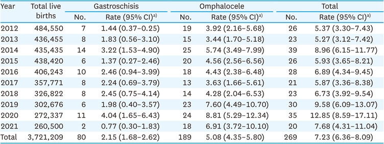 Estimated prevalence at birth of gastroschisis and omphalocele among live births in Korea from national survey by the Korean Association of Pediatric Surgeons