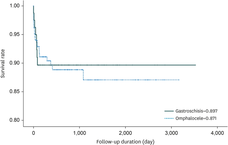 In conclusion, this study provides valuable insights into the management and outcomes of gastroschisis and omphalocele in Korea. The findings underscore the importance of early diagnosis, centralized care, and tailored surgical approaches to improve patient outcomes. Future research should focus on long-term follow-up and the development of standardized treatment protocols to further enhance the care and prognosis of infants with these challenging congenital defects.
