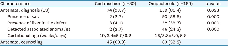 Antenatal findings of gastroschisis and omphalocele patients from the national survey by the Korean Association of Pediatric Surgeons